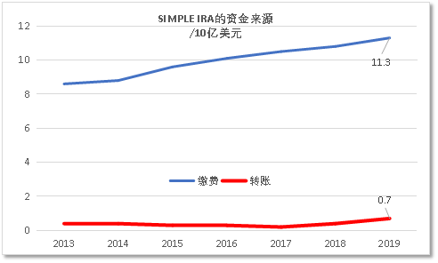 其他类型的IRA计划,其资金来源主要是正常的缴费,转账资金较少。
