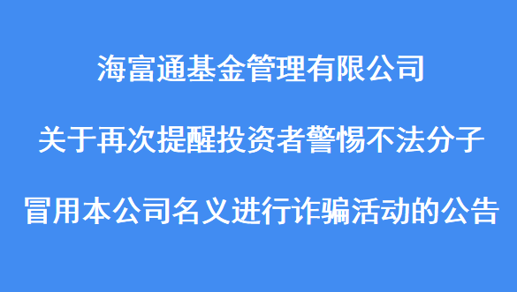 海富通基金管理有限公司关于再次提醒投资者警惕不法分子冒用本公司名义进行诈骗活动的公告